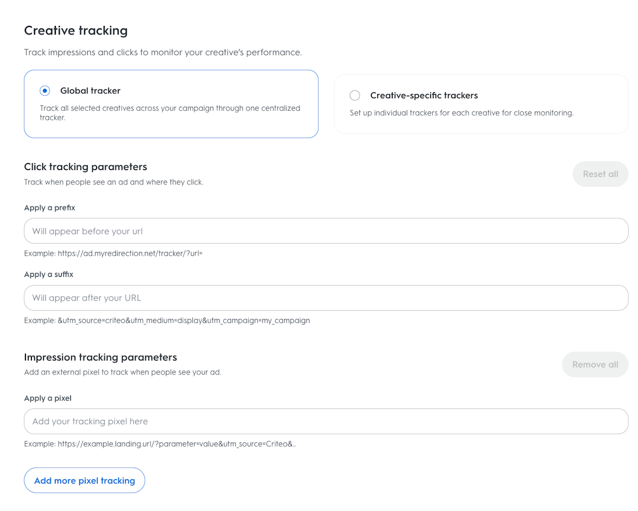 Optional: You may apply up to 10 impression trackers per line item or creative.