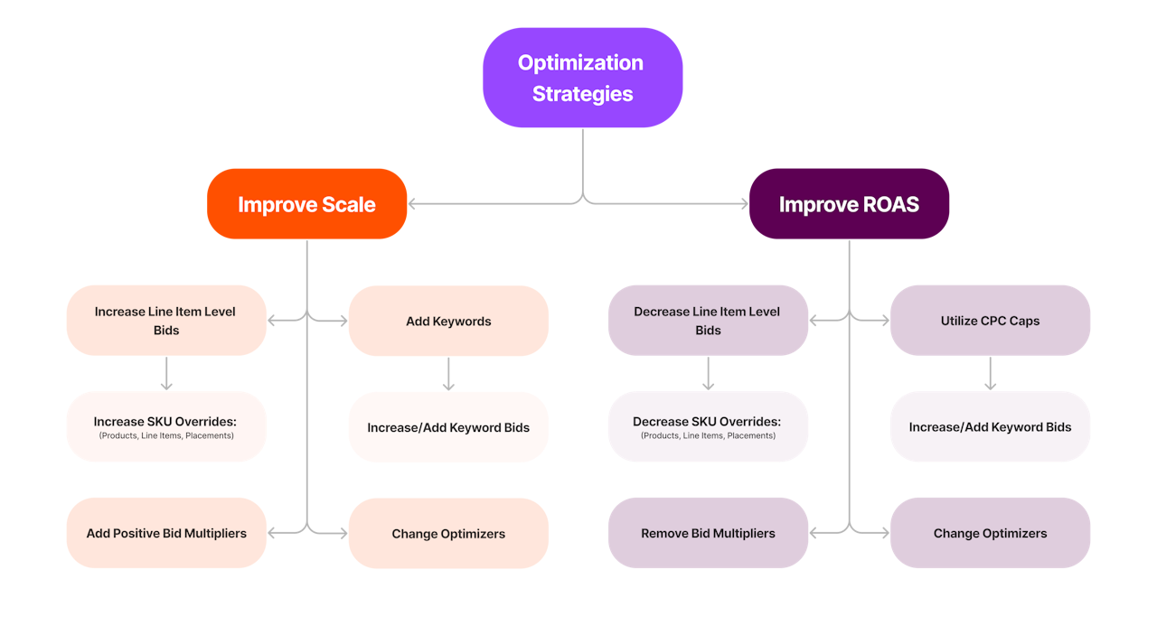 You can use this guide to adjust your strategy when your campaign isn't scaling, needs to improve ROAS, or you're looking for more visibility. These optimization levers will help you maximize return while balancing delivery and cost efficiency.