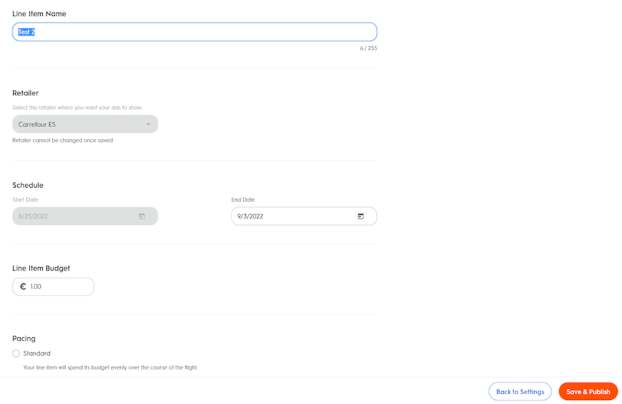 Once you've created your line item, you can still edit some of its settings and resubmit it for review to the retailer.
