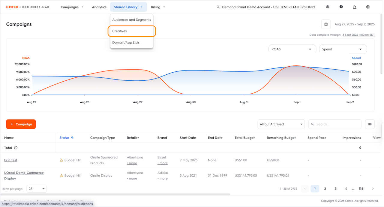 Open the Commerce Max platform and click Shared Library in the top navigation bar.