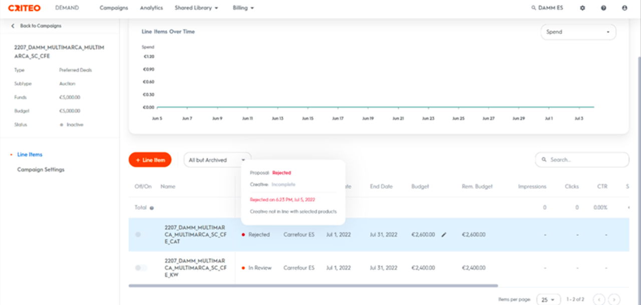 If already active, the line item will continue serving with the existing approved settings until the new incremental edits are approved. Upon approval, the line item will start delivering based on the new settings. If the incremental edits are rejected, the line item will continue to serve with the existing approved settings.