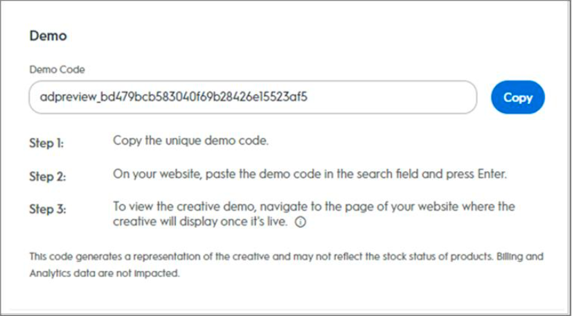 To view an exact depiction of the ad's appearance and rendering on the retailer site, click Live Demo and follow these instructions: