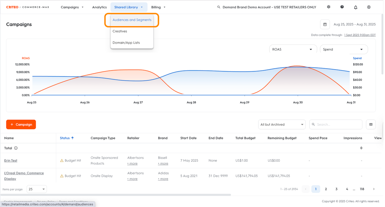 The Audiences and Segments tab in the Shared Library serves as the central repository for all your created audiences, providing the capability to generate new audiences as needed.