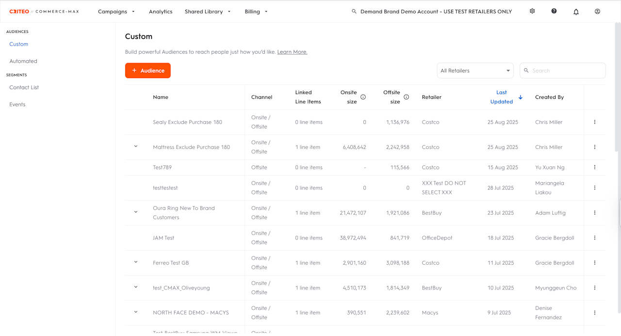 Custom audiences: Let’s you target customizable audiences built from retailer events and CRM data.