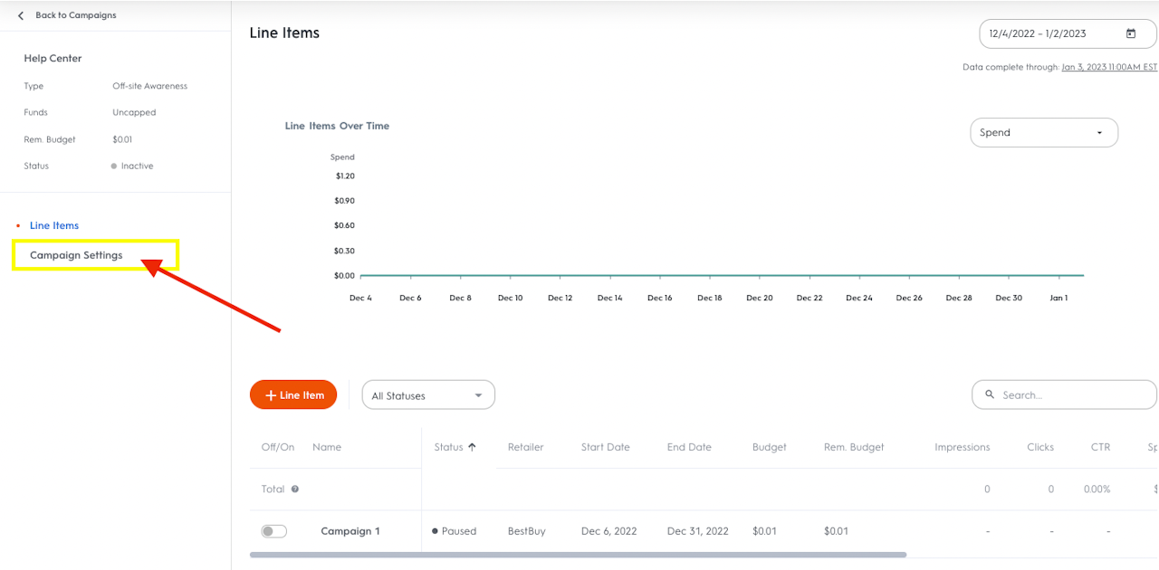 3. Click on Campaign Settings located in the left-pane of your campaign page.