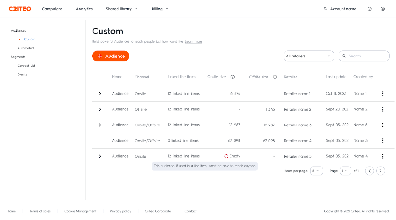 Audiences built here can be used across multiple Offsite Campaigns and Line Items.