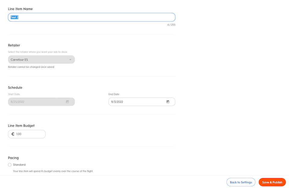 Once you've created your line item, you can still edit some of its settings and resubmit for review to the retailer.