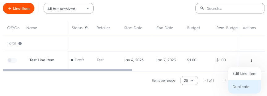 Select “Duplicate” and an identical line item will be added to the campaign.