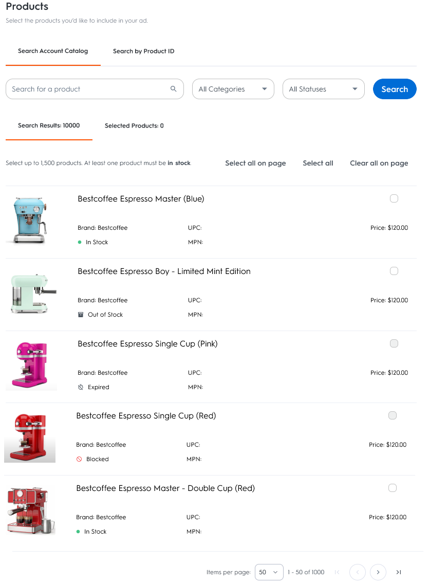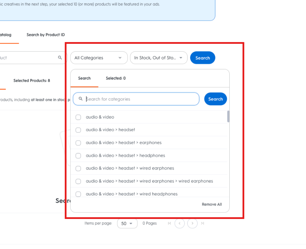 If you are having trouble finding a product, please reach out to your Criteo representative.