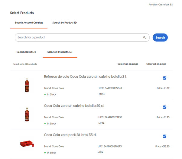 To add a new product, you can either use the Search Account Catalog or Find matches by product IDs option.