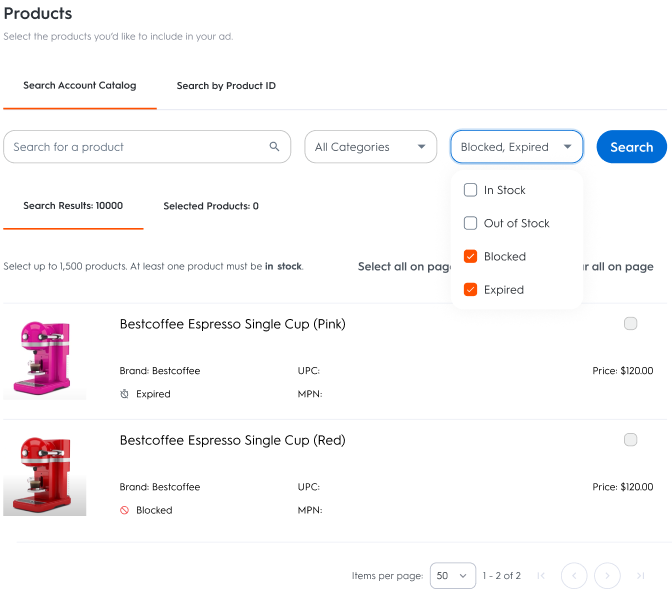 If you are having trouble finding a product, please reach out to your Criteo representative.