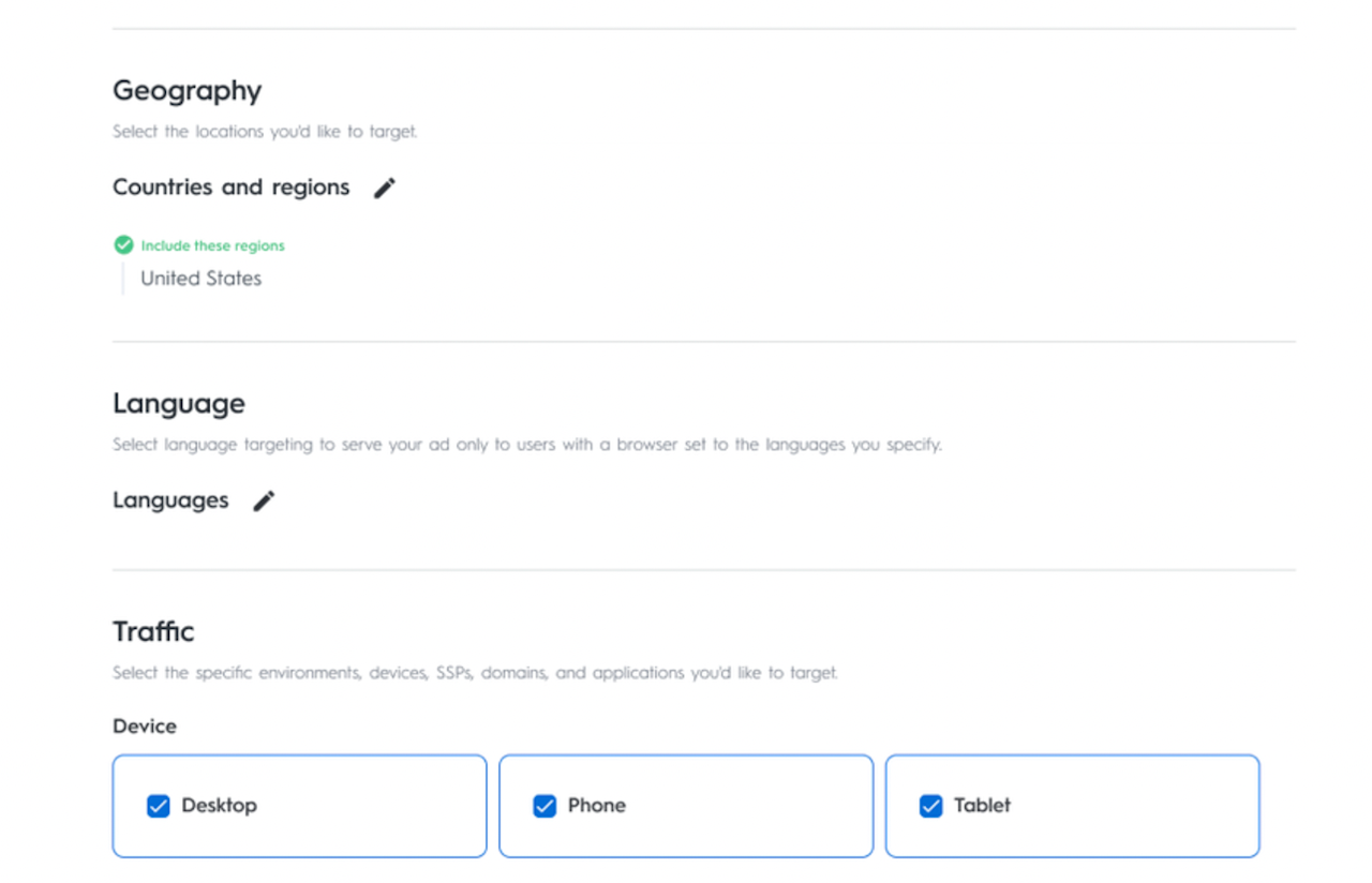 The placement type determines where your ad will appear to your audience. If you would like to only target audiences through a specific type of placement, here is where you can do so.